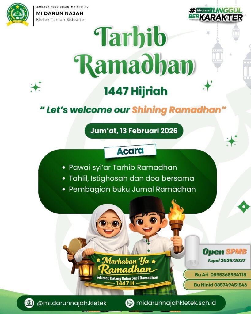 Keluarga besar TK dan MI Darun Najah Kletek kembali melaksanakan agenda rutin ziarah religi sebagai bentuk penguatan spiritual dan silaturahmi antar-dewan guru. Pada Sabtu (14/02/2026), rombongan yang terdiri dari seluruh jajaran pendidik ini berangkat sejak pukul 07.00 WIB untuk mengunjungi sejumlah makam waliullah di Jawa Timur dan Madura. Perjalanan panjang ini berlangsung khidmat hingga rombongan tiba kembali dengan selamat pada pukul 23.30 WIB. Rangkaian ziarah dimulai dengan mengunjungi Makam Sunan Bungkul di Surabaya sebagai titik pertama, kemudian dilanjutkan ke kawasan Makam Sunan Ampel. Setelah menyeberang ke Pulau Madura, rombongan menuju Makam Syaikhona Kholil Bangkalan. Perjalanan puncaknya bertempat di Kompleks Area Pemakaman Batu Ampar, Pamekasan. Di lokasi terakhir ini, seluruh dewan guru menutup rangkaian ziaroh dengan melaksanakan Khotmil Qur’an di area makam, menciptakan suasana yang sangat religius dan tenang. Kegiatan ziarah ini bukan sekadar perjalanan biasa, melainkan memiliki misi besar bagi keberlangsungan lembaga pendidikan Darun Najah. Tujuan utamanya adalah sebagai langkah tabarruk atau mencari keberkahan kepada para wali Allah. Melalui wasilah doa di tempat-tempat mustajab tersebut, diharapkan lembaga TK dan MI Darun Najah senantiasa menjadi institusi yang diberkahi, berkembang dengan baik, dan memberikan manfaat luas bagi masyarakat. Selain mendoakan kemajuan lembaga, para dewan guru juga secara khusus memanjatkan doa bagi seluruh siswa-siswi mereka. Harapan besar terselip di setiap lantunan ziarah agar para murid TK-MI Darun Najah Kletek tumbuh menjadi generasi yang sholih dan sholihah, serta memiliki ilmu yang bermanfaat baik di dunia maupun akhirat. Agenda rutin ini diharapkan mampu mengisi kembali energi spiritual para guru sebelum kembali mendidik di sekolah.