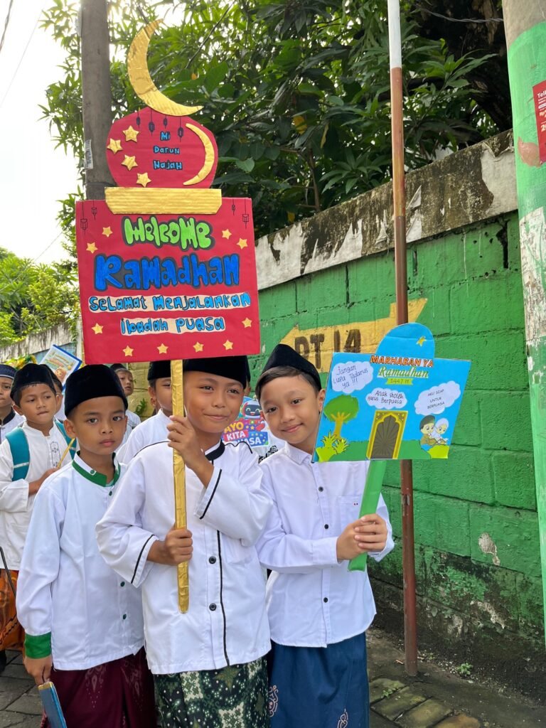 Menjelang datangnya bulan suci Ramadhan 1447 H, MI Darun Najah (MI DN) Kletek bersinergi dengan TK Muslimat NU 76 Darun Najah menggelar acara Pawai Tarhib Ramadhan dan Megengan pada Jumat (13/02/2026). Kegiatan yang dimulai sejak pukul 07.00 WIB ini diikuti dengan antusias oleh seluruh siswa, siswi, serta dewan guru. Acara ini bertujuan untuk menyebarkan syiar Islam sekaligus menumbuhkan kegembiraan di hati para siswa dalam menyambut bulan penuh berkah.